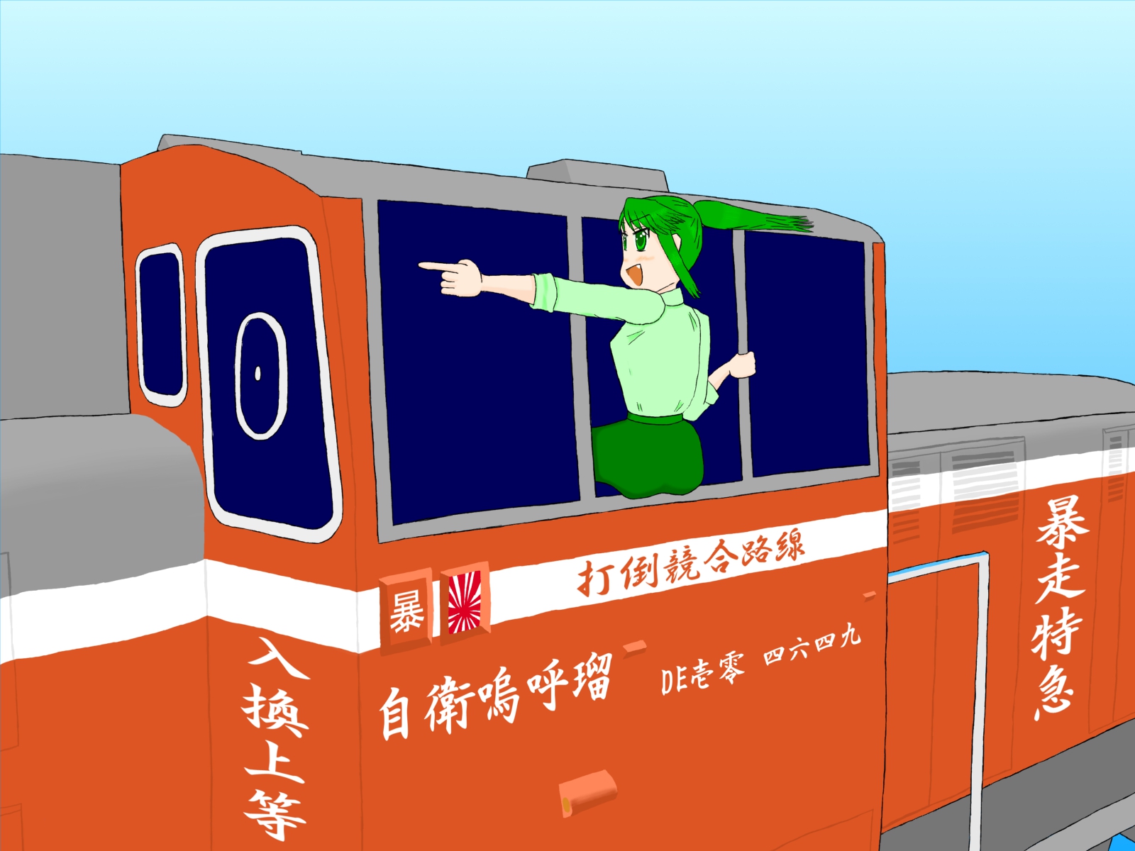 今度はウテシの絵を描いてみた。 | ■「場内進行!」 アハハ。ハコ乗りして運転してんの。アハハハハハh・・・あ〜ぁ ま、こんなウテシは即解雇でしょうな。帽子も被って無いし。車体に落書きまでしちゃってるし。 こんなんでも、一応は考えて描いたのデスヨ。 まぁ「電気機関車じゃ足で運転するのは無理だろう」ってレベルですが。 何故だ!坊y・・・電気機関車は、線路に対して垂直方向に運転台が向いてます。まぁ車と同じですね。 進行方向に向かって正対してます。それに対して、DE10は入換用としての側面が大きい為、運転台が線路に対して水平方向を向いてます。 首をグリッと90度曲げて運転するワケですね。何でかと言えば、反対を向けばスグにバック出来るからなんですよね。 1日中、機回しだの入換だの突放だのやってるんですから、一々エンド交換してたんじゃ効率悪くて仕方ないですからね。 数100m走ってバックして、また数100m走ってバックして。の繰り返しですから。 おっと話が逸れた。で、真後ろに窓があるんですから、ハコ乗りにはベスト!と言う事で選んだんですよ。 ちなみに、汽笛はゴッドファーザー、マフラーは直管。ATSは切ってるので、信号も速度制限も・・・ う〜ん・・・そこまで行くと流石に苦情が来るか? 良い子のみんなは・・・マネ出来ないか。二つの意味で。 まず、運転できねーし。今の電車は窓開かないし。 ま、まぁ。窓が開くからと言って、足や手を出してはいけませんよ。ましてやハコ乗りなんてしちゃいけません! そんなコに育てた覚えはアリマセン! まぁねぇ。今のご時世、運転席でタバコ吸ってみたり、非常用のドア開けボタンを押しちゃったり、盗撮してみたり、○○な職員が多いのも確かですからねぇ。 流石にハコ乗りするヤツなんていないだろうけど。良い子だけじゃ無く、良い職員のみんなもマネしないでネ しかし、自分で言うのもナンだけど「入換上等」は良く思いついたなぁ。 9月19日 バンザイ君に逢えて良かった |