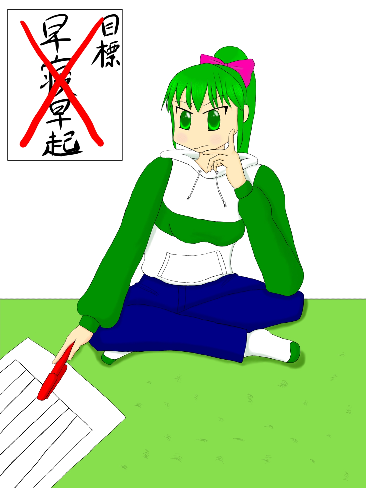 「忙しい」と言う言い訳は言いたくないし、聞きたくも無いんだけど、最近忙しくて中々描けてない。 | 描いても落書きだからアップするのもね。ってレベル。(アンパンだのマグカップだのアップしてもしょうがないし) それでも描いた一枚。 ■「描けども描けどもぐるーヴたんver.」 完成させちゃったから直すのも面倒だからこのまま。って所がいくつか。 自分的にはまぁまぁかなぁってレベル。 顔を俯瞰にするとレベルが格段に上がるんだよなぁ。あおりなんてとてもとても・・・ 毎度の事だけど、字が汚いのを突っ込んだら負け。 絵の練習はしても、字の練習をしないからいつまで経っても上手くならん。 字なんて記号なんだから練習すりゃ上手くなるのは分かってはいるのよ。でも、今更面倒臭くて。 今時、人にメモを渡すのなら活字だし、字を書くのなんて、メモくらいでしょ?履歴書とか他のとこでも使うっちゃ遣うけど、履歴書の場合は、下書きするし、他の時って 役所とかで名前と住所を記入するくらいだから、下手でも何でも気にならないし。 良く、字が汚くても自分が読めればなんて言う人がいるけど、そう言う奴のノートは大抵本人も読めない。 オイラの場合は違ったね!なんたって「後で読み返す事が無いモノを綺麗に書いてどうすんだ?」 そんなんだから成績が・・・ 資格試験系のノートが綺麗にとってあるのは「ちゃんと勉強した証」 国語・数学・科学・日本史・英語等の普通科のノートは、読解不能。かつ、不完全。 前半が書いてあって、後半が無いのがほとんど。(つまり、寝ちゃう) 稀に後半だけってのもあるんだけど、それは早弁。 酷い時は、1時限丸々書いてない。とかね。そう言う時は大概、前の時間の後半から寝て、次の時限の前半まで寝てるパターン。 そりゃ「授業料の無駄だ」って言われるのも分かる。良く卒業出来たなって感じ。 って・・・絵の話じゃなくなってる・・・ もちろん、工業科のノートはそれなりに取ってある。(実習系の話。)そりゃ、寝られる状況じゃないしね。 寝惚けて、旋盤のセンタを壊した事数度・・・マシニングセンタを破壊した事数度・・・ 旋盤の目盛りを1mm間違える程度の事は数え切れない。 まぁ、余裕を持って削ってる時は1mmくらいは問題ないんだけどねぇ。仕上げ近いのに1mmとかヤヴァイレベルですな。 ちなみに、ガス・アークの溶接で寝惚けた事は一度も無い。むしろ、怖くて怖くて・・・ あ〜また逸れた・・・ とにかく。まだまだ練習あるのみ。 5月9日 人の優しさ恋しい夜は |