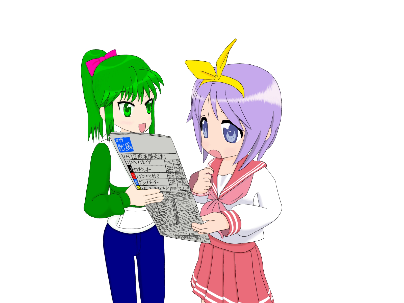 今回は初の版権モノ。 | ■「競馬を教わる柊つかさ」 何故、今らき☆すたなのか。 何故、つかさなのか。 ま、答えは簡単。つかさが好きだから。 描き始める前、丁度読んでいたのがらき☆すただったワケです。当時は既にアニメ版は終わってたはず。 そもそも読み始めたのも遅かったですし。けいおん!もそうですな。読み始めたのは2期すら終わってた。 で、読んでるウチに「こんなん、俺でも描けらぁ!」と全く以ってとんでもなく、恐れ多い事を考えたんですなぁ。 まぁ、簡単に言えば美水かがみに喧嘩を売ったワケです。 今考えれば、プロになんて勝てるはずも無いのに・・・ねぇ。 言ってみれば原点。スタート地点です。勿論、プロになんて敵うはずも無く、いつの間にか「描けるわい!」から「上手くなりたい」に変わったんですよねぇ。 で、どうなったか、は見れば分かります。当たり前ですが、勝てるはずなんかありません。 少しくらい練習してプロ並の絵が描けたら、プロなんておまんまの食い上げですよ。 キャリアが違い過ぎる。向こうは学生時代から描いてたワケでしょう。こっちは学生時代は旋盤やら溶接機やらエンジンやらと戯れてましたから。 写真部でもあったけど、真面目には活動してなかったからなぁ。 漫研部だのアニ研部だのには絶対近寄らなかったし。 教室で大人しく絵を描いてるヤツなんて居なかった気がする。なんせパァ〜なヤツらばかりでしたし。 あ・・・一人居たな・・・授業中に描いてたのが・・・何でラクガキしていていつも成績が良いのか・・・ オイラなんか真面目に聞いてても赤点スレスレだったのに・・・ ま、鳥頭だし・・・ 毎回毎回なんでこう、途中で絵の話から逸れるのか・・・ まぁ個人的にはシチュを解説するのはあまりスキじゃないんですよね。 だって、見りゃ分かるでしょ。タイトルと絵。この組み合わせで理解出来ない様な絵なんて疲れるだけ。 近代美術を目指してるワケじゃないので、見ただけでは理解出来ない絵を描くのはちょっと。 それに、その絵を見てどういうシチュを想像するのかを作者が強制すべきでもないと思うんですよねぇ。 漫画を描くのなら別ですが、これは絵ですから。 分かりやすく言えば、絵にカラのフキダシを書き込んでおくのもいいかもね。(みっともないからやらないけど) 今回の絵も、ウチの娘に無理矢理教え込まれているのか、つかさが興味を持ったのか、場所はどこなのか・・・ 妄想って楽しいヨネ それと、新聞の内容は意味無いよぅ・・・ むしろココが一番苦労した。馬の名前なんて考えるの疲れる。WPやっててもダビスタやってても、一番苦労するのが馬名を決める時だし。 文字の部分は「〜」と「|||||」の連続。 コイツは、先日行って来た美術館で盗んできた技術。 「〜〜〜」だけよりもリアルに見えるかなぁと。ただ、問題点も分かった。 手間が凄い。果てしなく疲れる。だから途中で挫折。途中からは「〜〜〜」オンリーに。 手間を惜しんじゃダメだってのは分かってるんですけど・・・ねぇ・・・ 9月27日 小さな溜息混じりに振り返り |