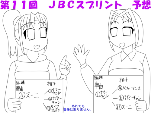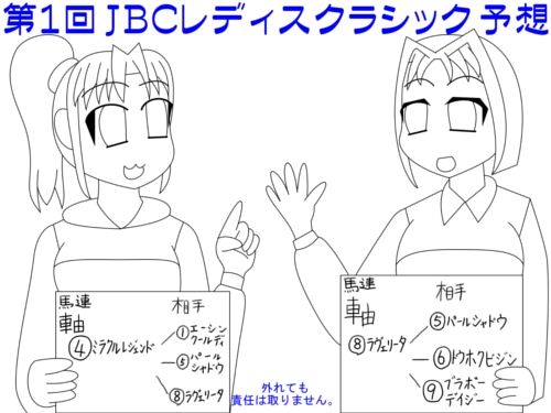 今日はJBCの予想だけ。 | ■「JBCスプリント予想」 ■「JBCレディスクラシック予想」 レディスクラシックは新設重賞なんですけどね。格付けもされてないんだけど、第一回記念って事で。 10月4日 誰かに届く明日がきっとある |